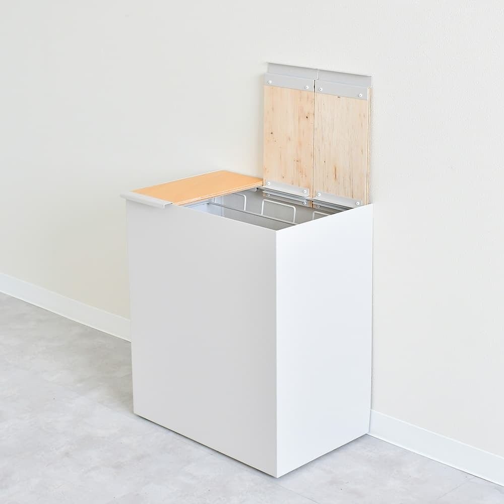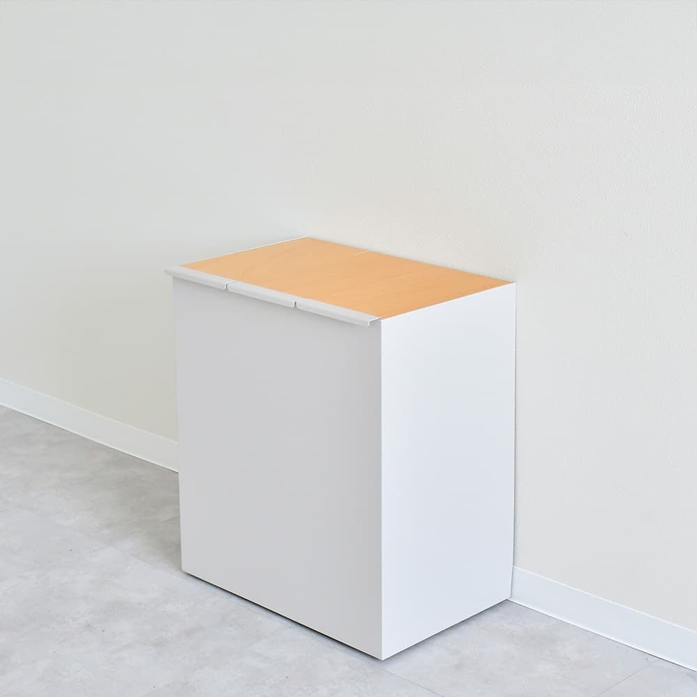 シンプルなフレームに、天然木積層合板の蓋を組み合わせたデザイン。ゴミ箱であることを感じさせない、空間に美しく溶け込む存在感が魅力です。