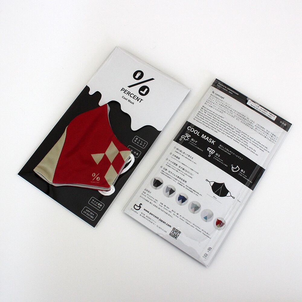 % PERCENT マスク(レッド・ベージュ)ふつうサイズ 濡らして冷んやりクールマスク サイズ調整 抗菌 抗ウイルス 立体マスク