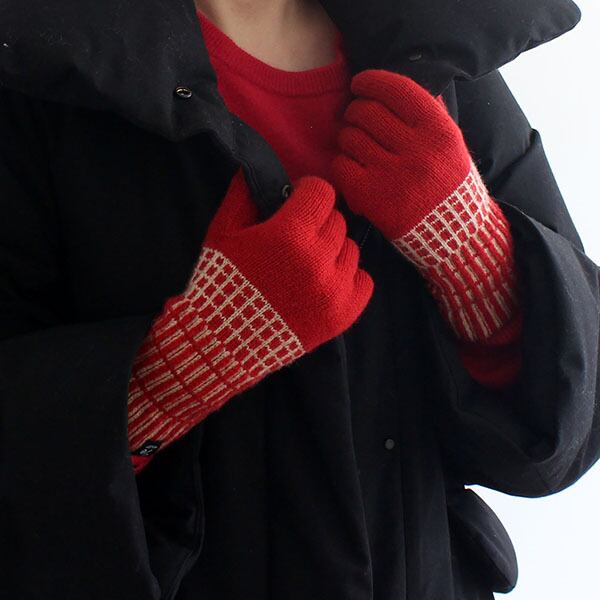 カシミヤ100:% PERCENT 手袋 (レッド)ホールガーメント・指暖・スマホ対応・ギフトBOX(男女兼用フリーサイズ)