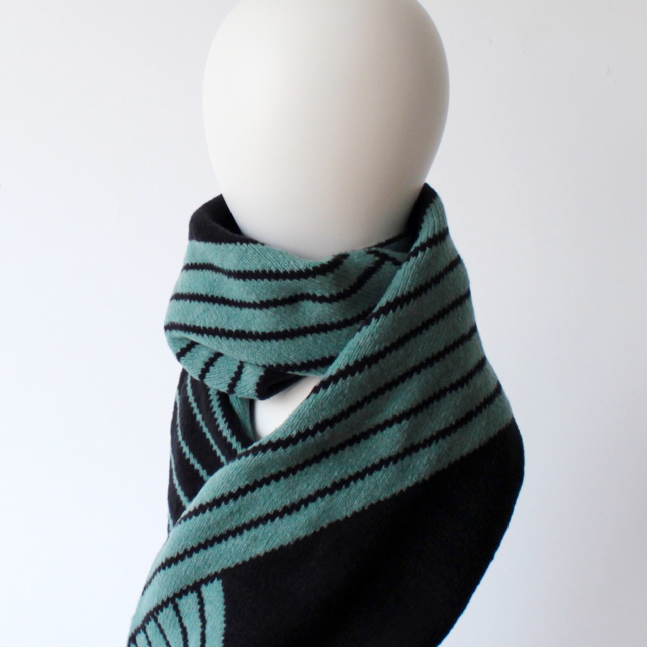 % PERCENT マフラー(秋冬用・リバーシブル)ミントグリーン50%・ブラック50%/セルフヒーター・ホールガーメント
