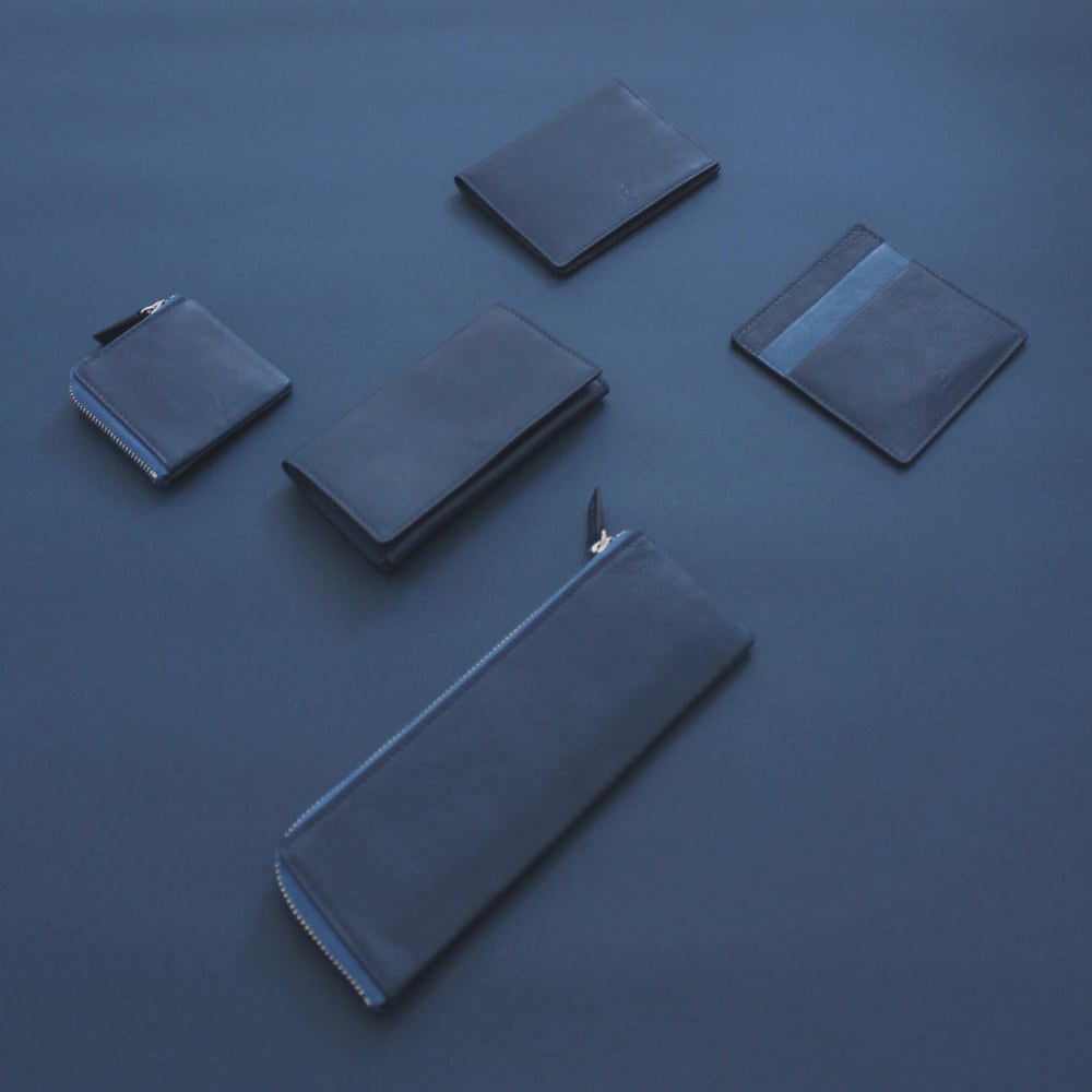 良質な本革を天然染色「藍染」で、一枚一枚丹念に職人の手で染め上げたレザーは